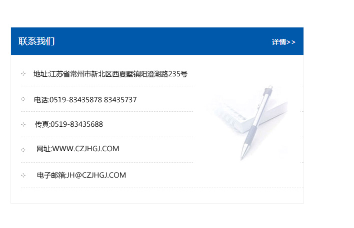 傳真:0519-83435688    郵編:213135    網址:WWW.czjhgj_com.77777888.com    電子郵箱:JH@czjhgj_com.77777888.com